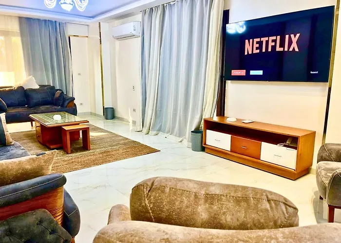 Modern 3Br Apartment - Prime Dokki Location offers a fully-equipped kitchen. Modern 3Br Apartment - Prime Dokki Location is a 21-minute drive from Cairo International airport. This accommodation offers a shared lounge with views of the garden.